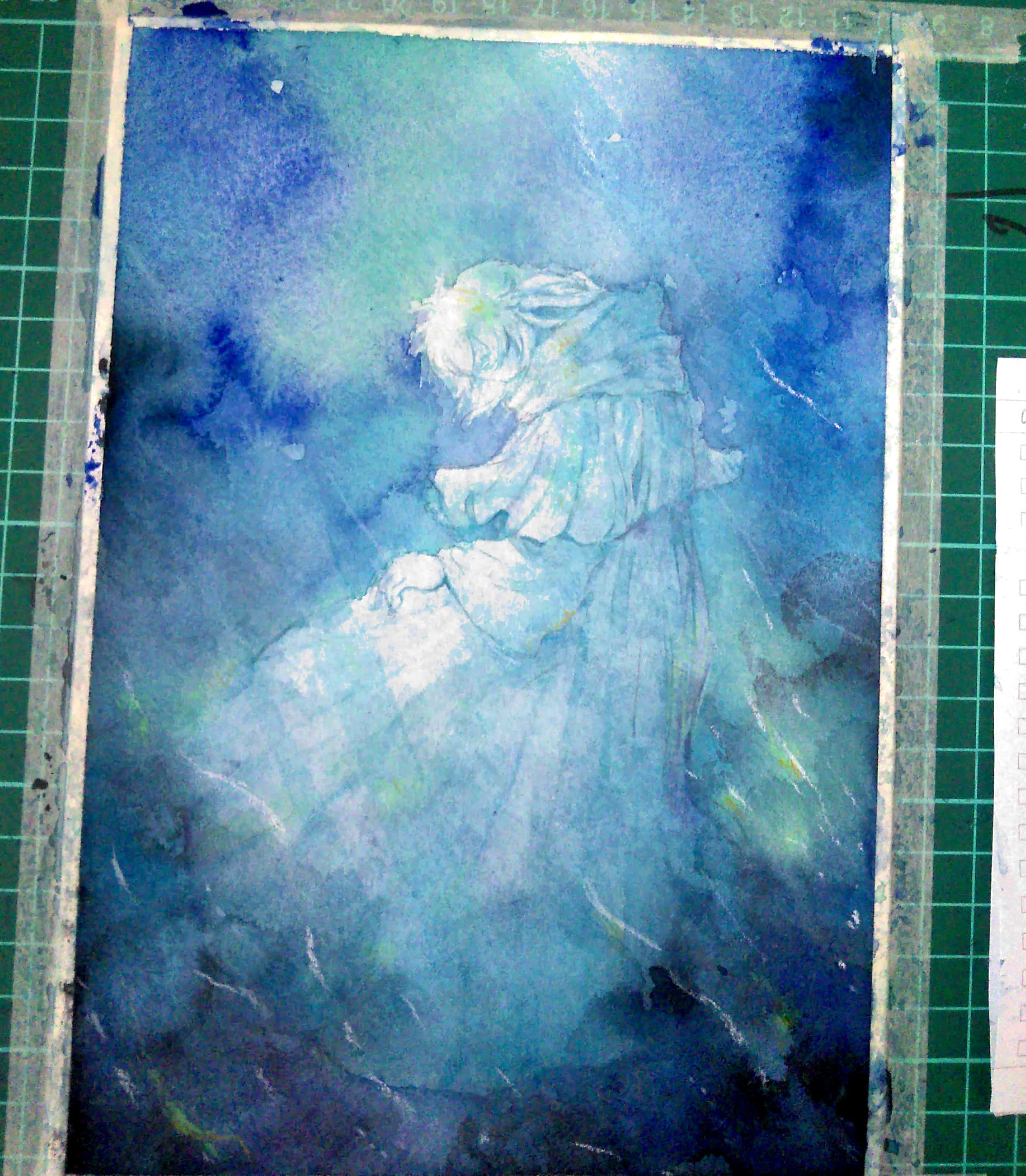 色々と落ち込んでいて絵から離れてたけど、自分の描きたいもの、表現したいことのために絵を描くほうがいいよ、とアドバイスを受けて、今回は雰囲気でやりたいように描く、すべてアバウトの成り行き進行と決める。