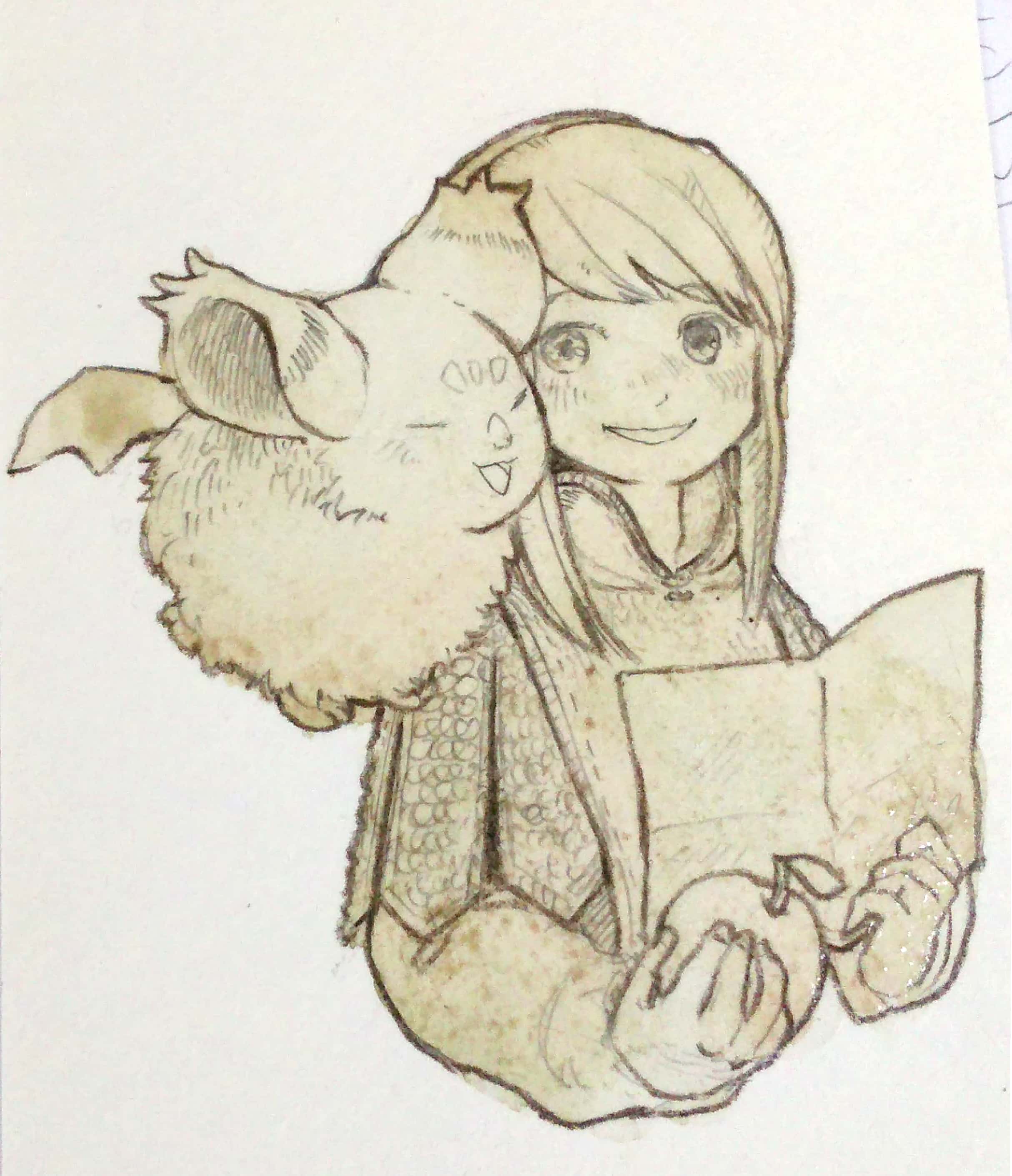 ラフを描き詰め、それをトレスして水彩紙(ナチュラルワトソン)に線画を描く